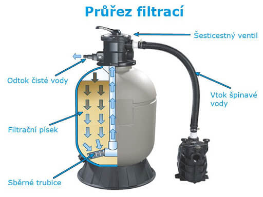 Průřez bazénovou filtrací